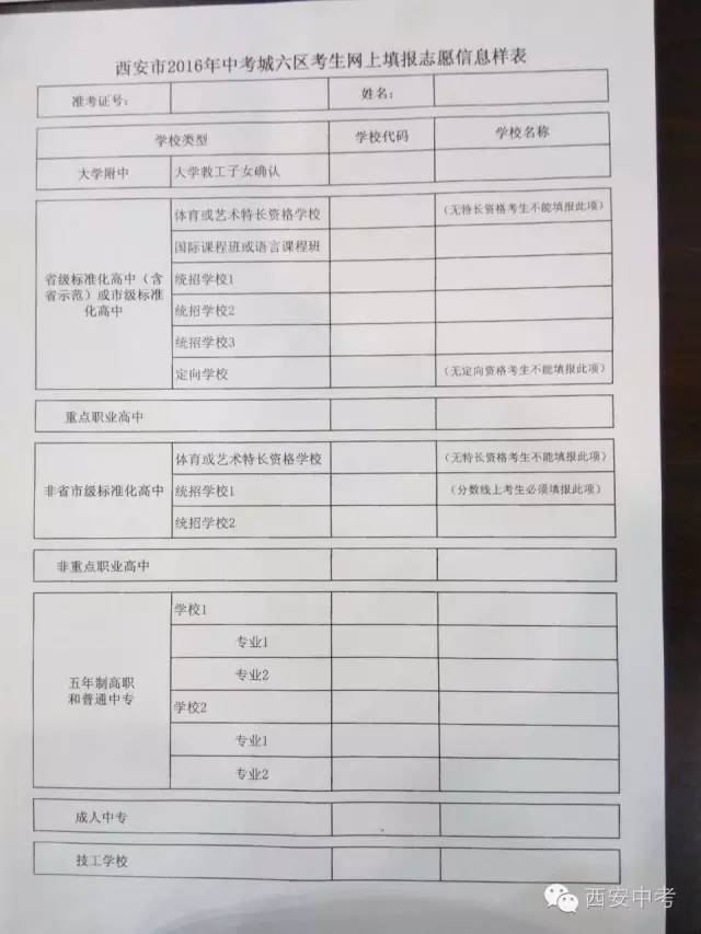 后天就要出分数了,分数出来后,家长们就要抓紧时间咨询目标校信息了,打听到学校分数线相关信息后就要填报志愿了,想必很多家长都不要清楚中考志愿填报信息样表长什么样,小编特意在此特意帮助大家搜集到了往年的志愿填报样表,家长可以打印出来,和孩子先再样表上谋划谋划。